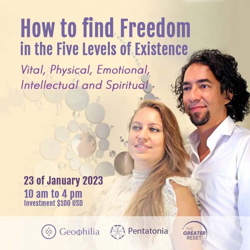 “How to find Freedom in the Five Levels of Existence: Vital, Physical, Emotional, Intellectual and Spiritual”.