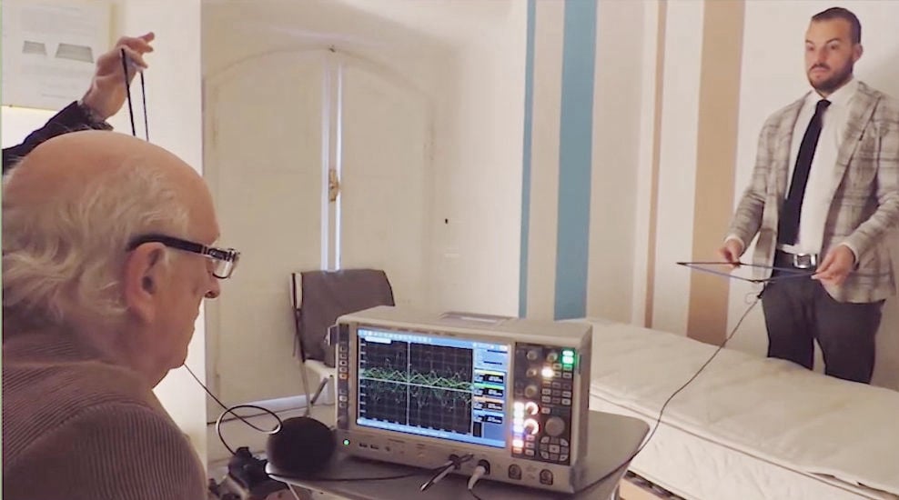 In another experiment, a Georythmogram Procedure (skin resistance measurements) according to Dr. Ernst Hartmann was carried out by Engineer Giacomo De Vito, in order to measure a person’s biological sensitivity to a location, including the effects of underground water courses, geological faults, earth networks or other kinds of geophysical anomalies.